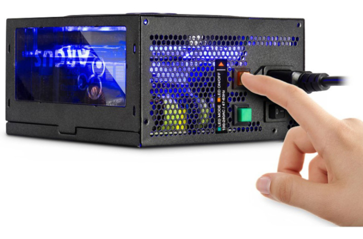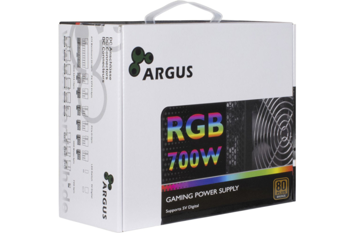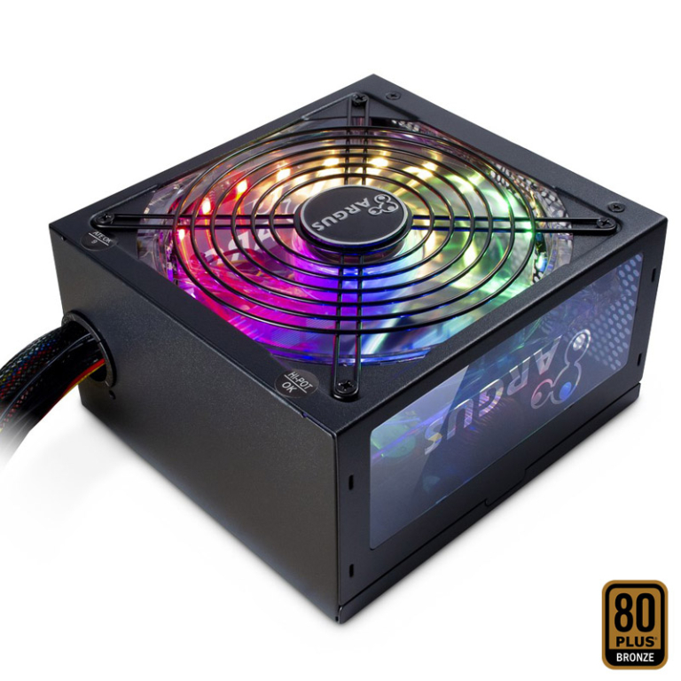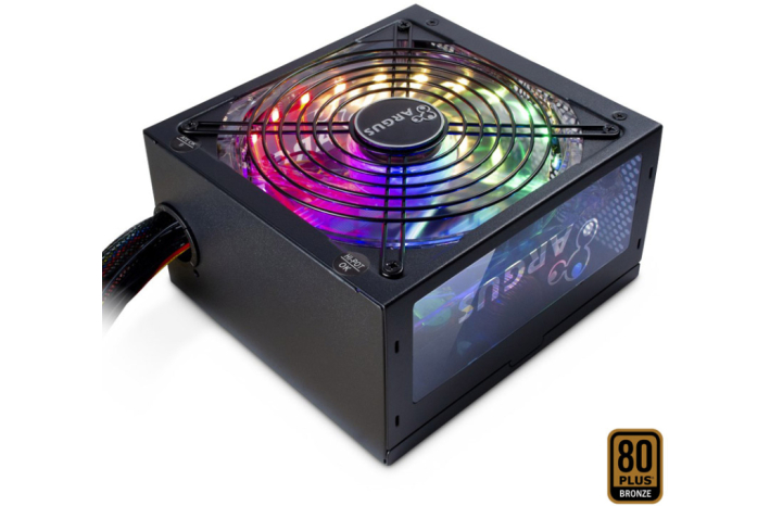 Napajalnik INTER-TECH Argus RGB-700W II 80 Plus Bronze je zmogljiv in modularen napajalnik, ki pritegne pozornost s svetlobnimi učinki RGB osvetljenega ventilatorja.