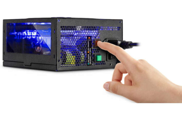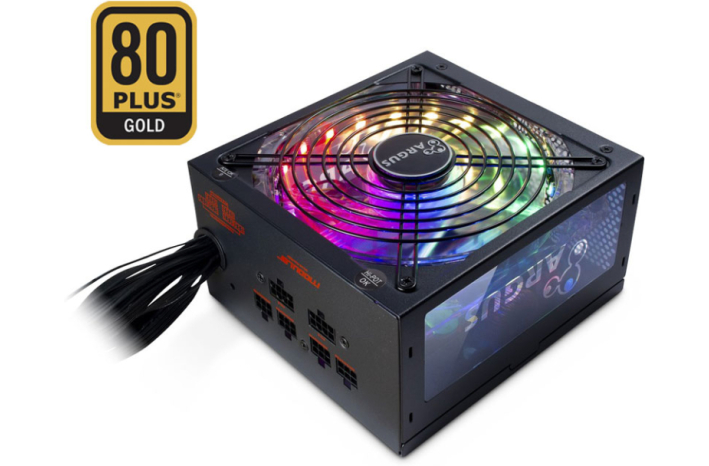Gumb na zadnji strani napajalnika omogoča nadzor nad barvami LED lučk v obroču ventilatorja. Stranica iz akrilnega stekla in Argus logo pritegneta dodatno pozornost. Napajalnik samodejno menja barve za še večji učinek.