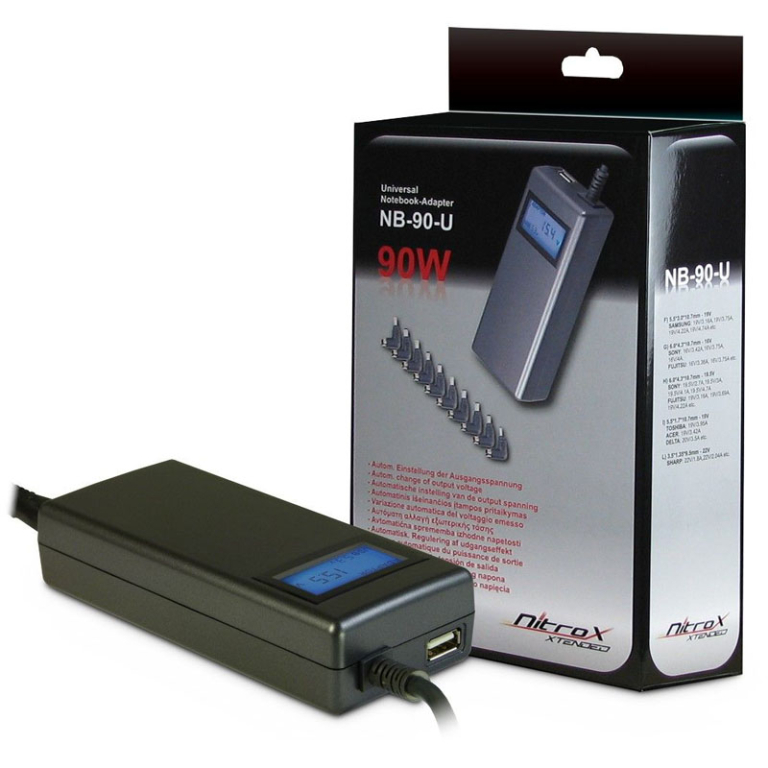 INTER-TECH Nitrox NB-90U je visoko zmogljiv univerzalni napajalnik, ki lahko napaja večino prenosnikov na trgu. S 90W moči in 10 različnimi nastavki je idealen za različne modele prenosnikov.