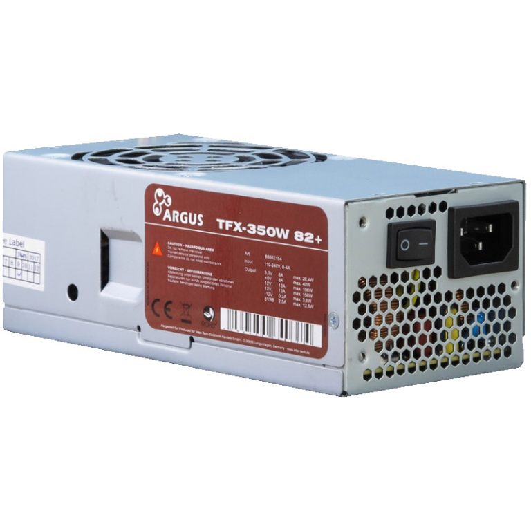 Napajalnik TFX-350W je zmogljiv in učinkovit, primeren za namizne sisteme s posebnimi zahtevami. Ponuja več možnosti priklopa, vključno z vtičem PCIe 6+2pin za napajanje grafičnih kartic. Z učinkovitostjo več kot 82+ pozitivno vpliva na denarnico in okolje.