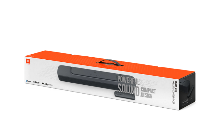 Potopite se v svoj najljubši film, začutite energijo množice na veliki tekmi. Soundbar JBL Bar 2.0 All-in-One je kompakten, zmogljiv in je enostaven za uporabo. Priklopite se z HDMI ali optičnim kablom in uživajte v vsej njegovi veličini. Vgrajen Bluetooth pomeni, da lahko preprosto predvajate glasbo iz pametnega telefona ali tablice. Dolby Digital, JBL Surround Sound in pametni zvočni način zagotavljajo neverjeten zvok vsakič, ko želite gledati ali poslušati. Priključite, vklopite in se obdajte z značilnim zvokom JBL.
