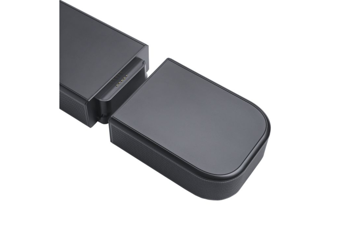 Preprosto dvignite odstranljive prostorske zvočnike z zvočne letve — to lahko storite celo z eno roko — in jih postavite za seboj v sobo za resničen prostorski učinek. Tako preprosto je.