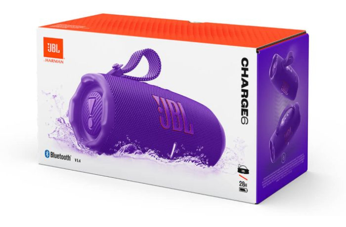 JBL Charge 6 vključuje plastiko po uporabi (post-consumer recycled) in reciklirano tkanino za mrežo zvočnika. Embalaža je izdelana iz papirja s FSC certifikatom in potiskana s sojinim črnilom.