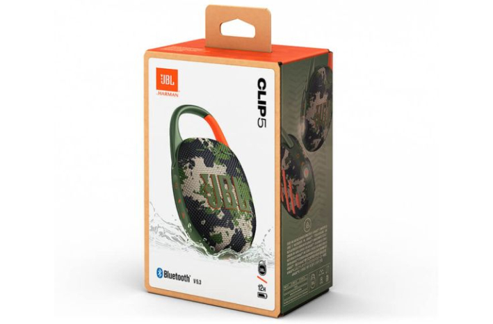 JBL Clip 5 vključuje reciklirano plastiko in tkanino za zaščitno mrežo zvočnika. Embalaža je izdelana iz papirja s certifikatom FSC in natisnjena s sojinim črnilom.