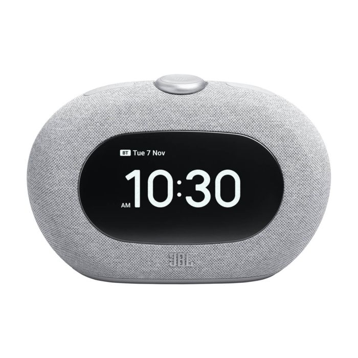 Začnite dan z močnim stereo zvokom JBL Pro, ki napolni prostor – naj bo to vaša najljubša lista predvajanja ali pomirjujoče melodije ptičjega petja. Naša skrbno zasnovana akustična oblika zagotavlja, da je vaša glasba jasna in uravnotežena, da vas spravi v gibanje že zjutraj.