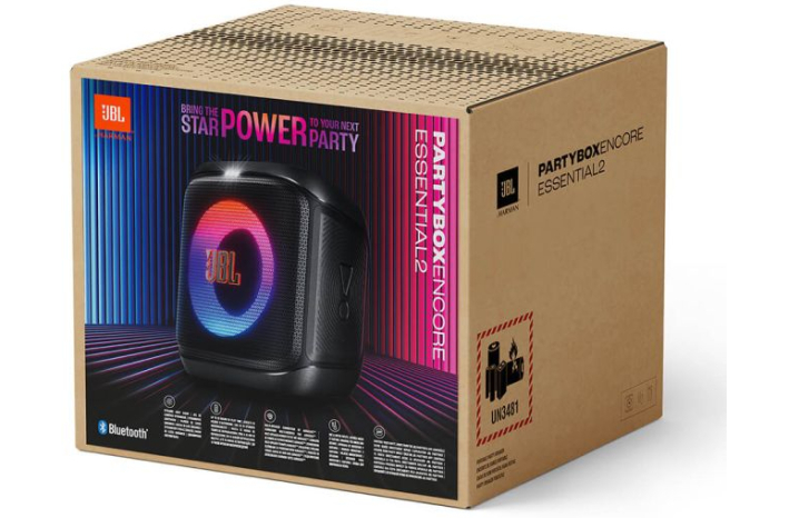 JBL PartyBox Encore Essential 2 je izdelan iz reciklirane plastike po uporabi. Pakiran je tudi v papir s certifikatom FSC, natisnjen s sojinim črnilom.