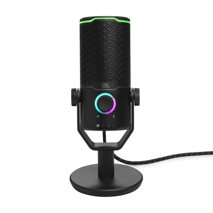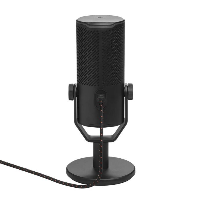 Mikrofon JBL Quantum Stream Studio trdno stoji na mizi zahvaljujoč robustnemu stojalu iz zlitine iz cinka. Zaradi vrhunskih komponent, kot sta kovinsko ohišje in rešetka, je ta mikrofon primeren za vse profesionalne nastavitve pretakanja.