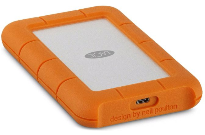 LaCie Rugged USB-C je prenosni zunanji trdi disk, zasnovan za uporabnike, ki potrebujejo zanesljivo in vzdržljivo shranjevanje podatkov v zahtevnih okoljih. Njegova robustna zasnova, jo je zasnoval oblikovalec Neil Poulton, omogoča odpornost na padce, pritiske in vremenske vplive, kar ga naredi idealnega za uporabo na terenu.