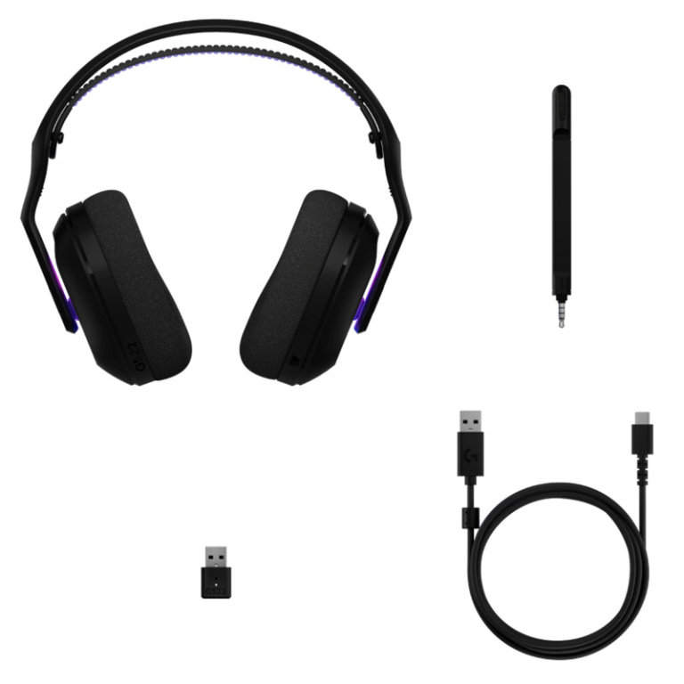 Slušalke so lahke (290 g) in udobne, z dvojno plastjo spominske pene, zračnim naglavnim trakom in naravno obliko ušesnih blazinic. Povežete jih lahko na tri načine: prek LIGHTSPEED brezžičnega dongla, Bluetootha ali USB-C kabla. LIGHTSYNC RGB osvetlitev ponuja osem prilagodljivih con z 16,8 milijona barv, ki jih lahko nastavite prek programske opreme G HUB ali G MOBILE.