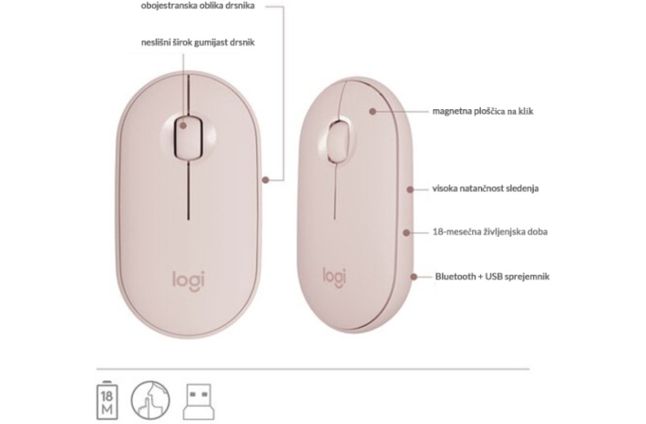 LOGITECH M470 Slim Combo brezžična roza tipkovnica + miška