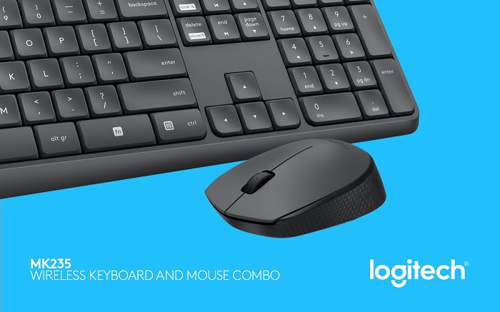 Logitech MK235 je brezžični komplet tipkovnice in miške, ki omogoča hiter in enostaven dostop do najljubših internetnih strani ter nadzor multimedijskega predvajalnika. S kar 15 multimedijskimi tipkami lahko opravljate različne funkcije preko funkcije "Fn". Baterije zdržijo do 3 leta ob redni uporabi.