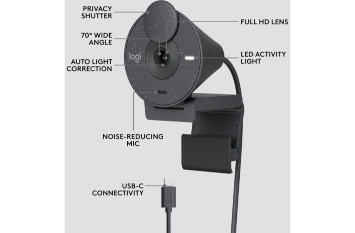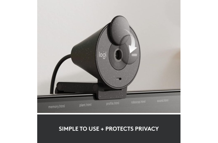 pokriva lečo, ko ni v uporabi. Izdelal vodilni na trgu v spletnih kamerah. Deluje z vašim obstoječim IT ekosistem in ga je mogoče upravljati in posodabljati na daljavo prek Logitech Sync. Izdelano iz vsaj 48 % reciklirane plastike z idejo podpreti bolj pravičen in podnebno pozitiven svet.