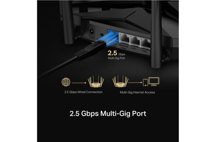 Ne samo, da vam ta usmerjevalnik ponuja izjemno hitrost, temveč tudi napredno varnostno zaščito z najnovejšim WPA3. Poleg tega lahko enostavno upravljate s povezanimi napravami in omrežnimi nastavitvami za popolno prilagodljivost.