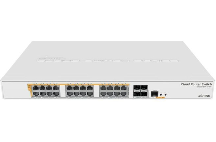 Mikrotik Cloud Router Switch CRS328-24P-4S+RM je profesionalno Layer 3 stikalo kombinirano z usmerjevalnikom namenjeno vgradnji v komunikacijsko omaro. Vsebuje 24x gigabitnih vhodov ter 4x SFP+ (10GB) kletko in ponuja samodejno zaznavanje izhodnega napajanja na priključkih (802.3.af/at PoE/PoE+ in pasivni PoE). Usmerjevalnik ima tudi Quick-Set funkcijo, ki omogoča lažjo namestitev za osnovno uporabo vsem uporabnikom...