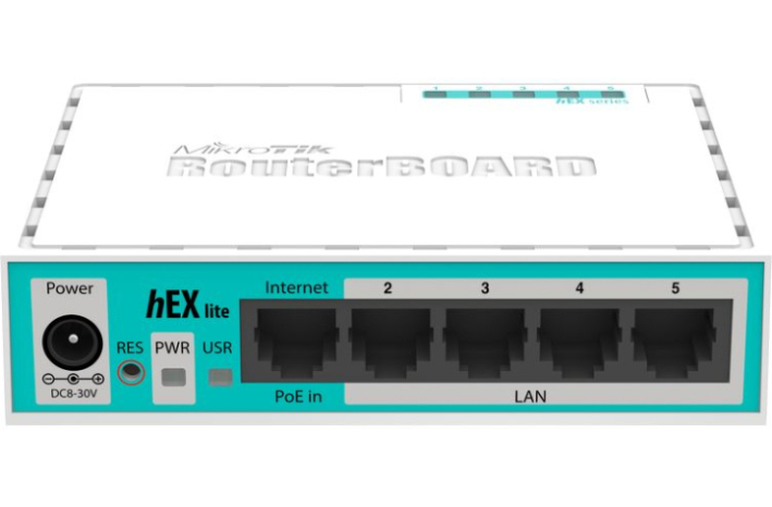 Žični usmerjevalnik - router Mikrotik hEX lite RB750r2 je majhen pet portni usmerjevalnik v privlačnem plastične ohišju. Z nizko ceno, nižjo kot je sama licenca za RouterOS, je usmerjevalnik  enostavno najboljša izbira za upravljanje žičnega domačega omrežja - hEX lite RB750r2 ima vse. Je eden najbolj cenovno privlačih usmerjevalniku z MPLS podporo na tržišču in je primeren za vsako domače omrežje. Postavitev je enostavna, izbirate lahko z napajanjem preko priloženega adapterja ali preko PoE kabla.