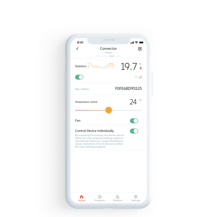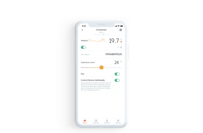 Aplikacija je narejena tako, da bo zaznala vsak grelnik, ki je nameščen, priključen na hišo in določeno sobo. Prostor je lahko sestavljen iz enega ali več grelnikov.