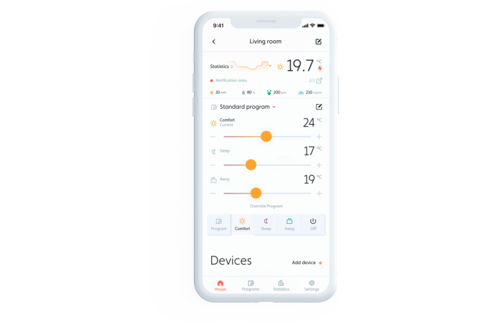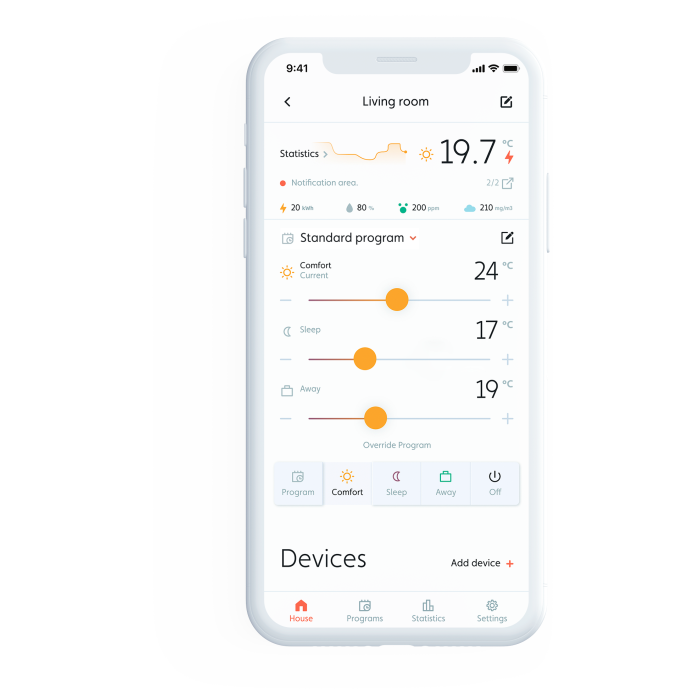 Preglasite nastavljene programe za celotno hišo, posebno sobo ali določen grelec. Programa ni treba urejati, če prideš domov prej kot običajno en dan)