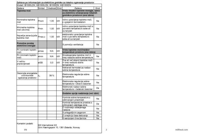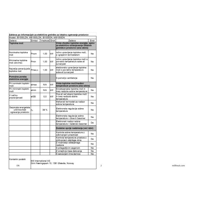 Model MB1000L DN je eden izmed novejših modelov v seriji panelnih grelnikov MB. Primeren je za učinkovito ogrevanje srednjih do večjih bivalnih prostorov kot so spalnice in kuhinje. Grelni element je sestavljen iz aluminija, ki zagotavlja visoko učinkovitost ter nizko temperaturo na sami površini fronte, sam okvir pa je sestavljen iz jekla, kar zagotavlja vzdržljivost ter odpornost na mehansko in toplotno obrabo. Prednji del je sestavljen iz stekla, kar izdelku daje kakovosten in eleganten izgled.