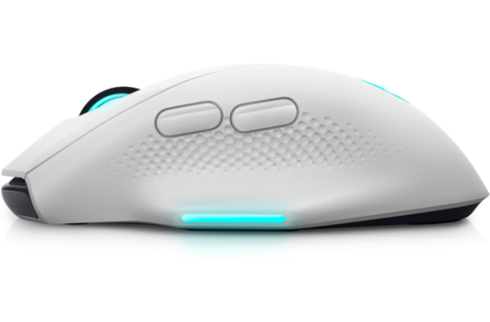 Nova brezžična miška Dell Alienware AW620M v beli barvi z RGB osvetlitvijo in optičnim senzorjem. Odlična izbira za navdušence nad igrami.