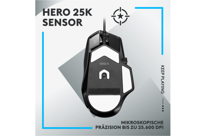 G502 X je lahka miška s koleščkom za preklapljanje med prostim in stopnjevanim vrtenjem. Ima tudi 13 programabilnih gumbov za prilagodljivost.