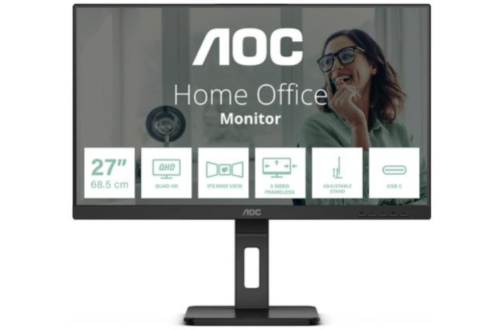 Eleganten in zmogljiv monitor AOC 68,6 cm (27,0") Q27P3CV s Quad HD ločljivostjo 2560x1440 slikovnih pik, 75Hz osveževanjem in 4ms odzivnim časom.