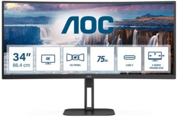 Monitor AOC 86,4 cm (34,0") CU34V5C vas bo navdušil z ločljivostjo 3440x1440, ki omogoča izjemno jasno sliko in velikostjo 86,4 cm (34,0"), ki zagotavlja popolno izkušnjo gledanja.