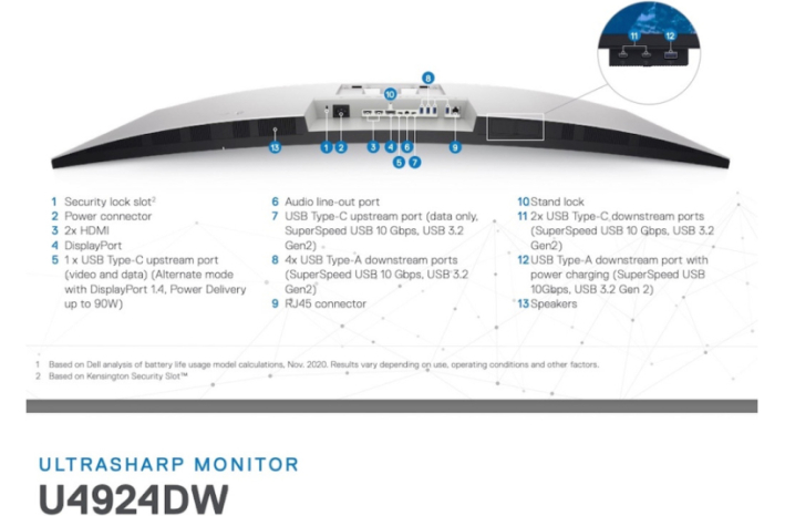 Monitor Dell 124,5 cm (49,0") U4924DW je vrhunski zaslon z visoko ločljivostjo in hitrim odzivnim časom.