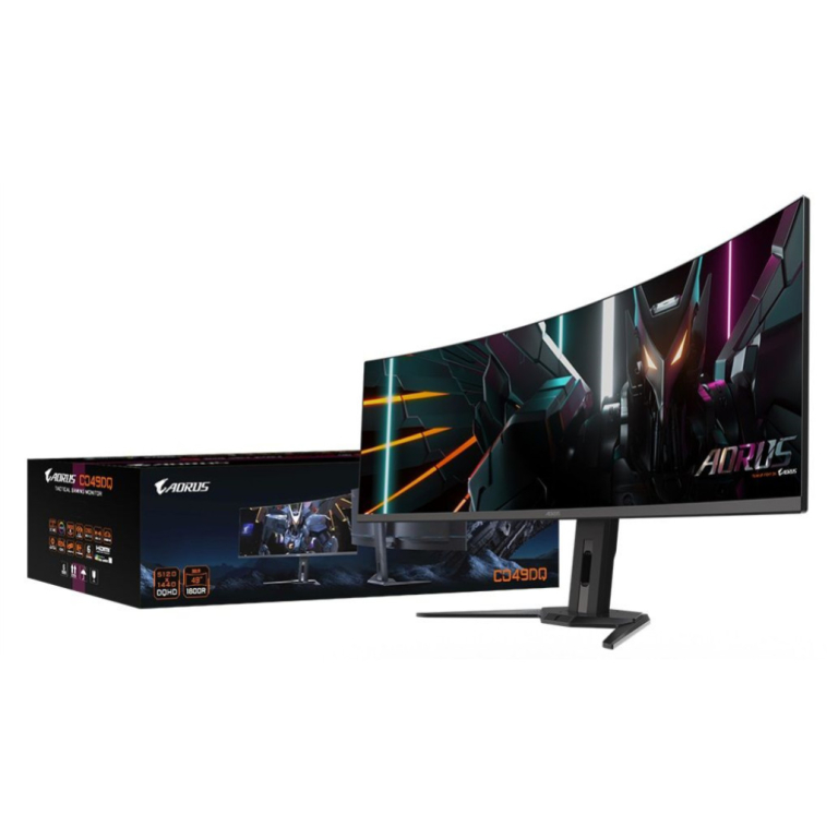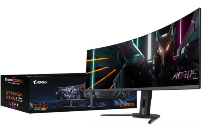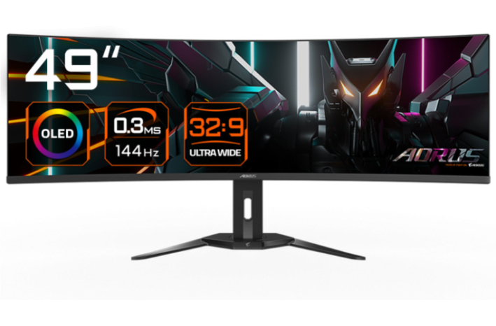 GigaByte AORUS CO49DQ igralni monitor - OLED (QD-OLED), 144 Hz 0,03 ms GtG, gebogen (ukrivljen), 1800R, 124,5 cm (49") | OLED (QD-OLED) / AMD FreeSync Premium | 165 Hz Bildwiederholrate / Kontrast 1.000:1 | Svetlost 350 cd/m? / DQHD ločljivost 5120x1440| Odzivni čas 0,03 ms / nastavitev višine | DisplayPort, HDMI, USB-C.