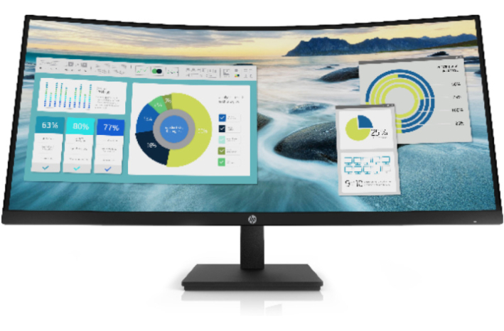 Eleganten ukrivljen monitor HP s kristalno jasno sliko in visoko ločljivostjo.