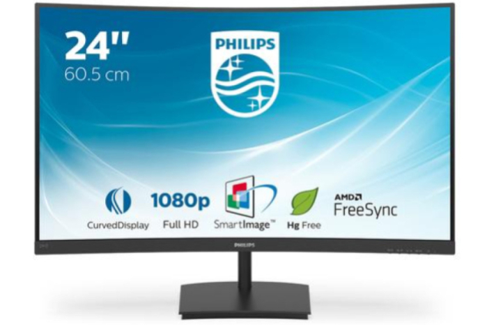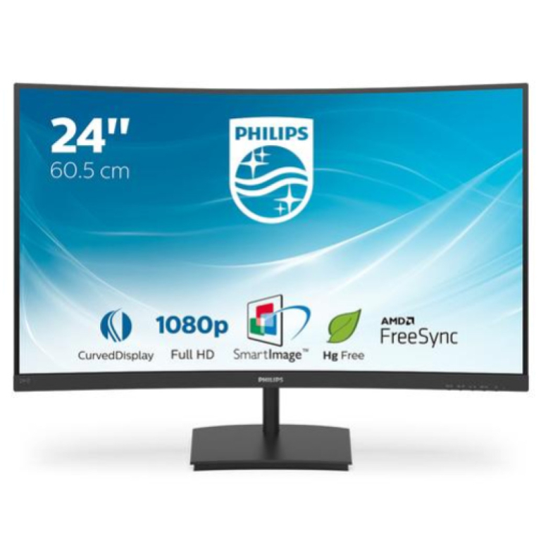 Eleganten in ukrivljen monitor Philips 60,5 cm (23,8") z ločljivostjo 1920x1080, odzivnostjo 4ms ter osveževanjem zaslona 75Hz.