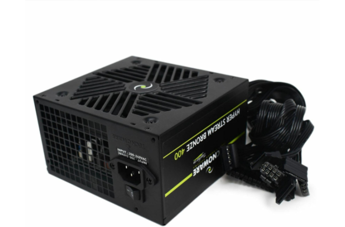 Tecnoware ATX 400W Bronze napajalnik narejen za vgradnjo v računalniško ohišje. Visoka zmogljivost ob nizki glasnosti in visoki učinkovitosti, aktivna PFC tehnologija.