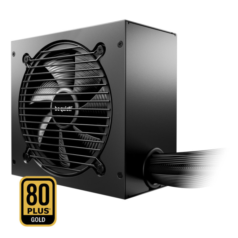 Napajalnik Pure Power 12 750W zagotavlja 80 PLUS Gold učinkovitost do 92,8%, s polno podporo za PCIe 5.1 GPU-je in tihim 120 mm ventilatorjem be quiet!