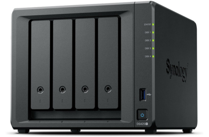 NAS ohišje Synology DS425+ 4x 3,5''SATA HDD 2x M.2 NVMe Intel Celeron J4125 4-core (4-thread) 2.0 GHz 2GB DDR4 non-ECC 1x RJ-45 1GbE 1x RJ-45 2.5 GbE 2x USB 3.2 Gen1