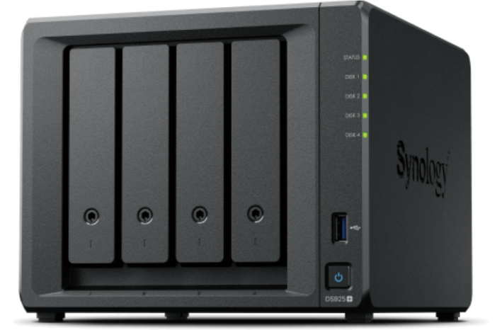 NAS ohišje Synology DS925+ 4x3.5'' SATA HDD/SSD 2x M.2 NVMe AMD V1500B 4-core (8-thread) 2.2 GHz 4GB DDR4 ECC SODIMM 2x RJ-45 2.5GbE 2x USB 3.2 Gen1 1x USB-C expansion port