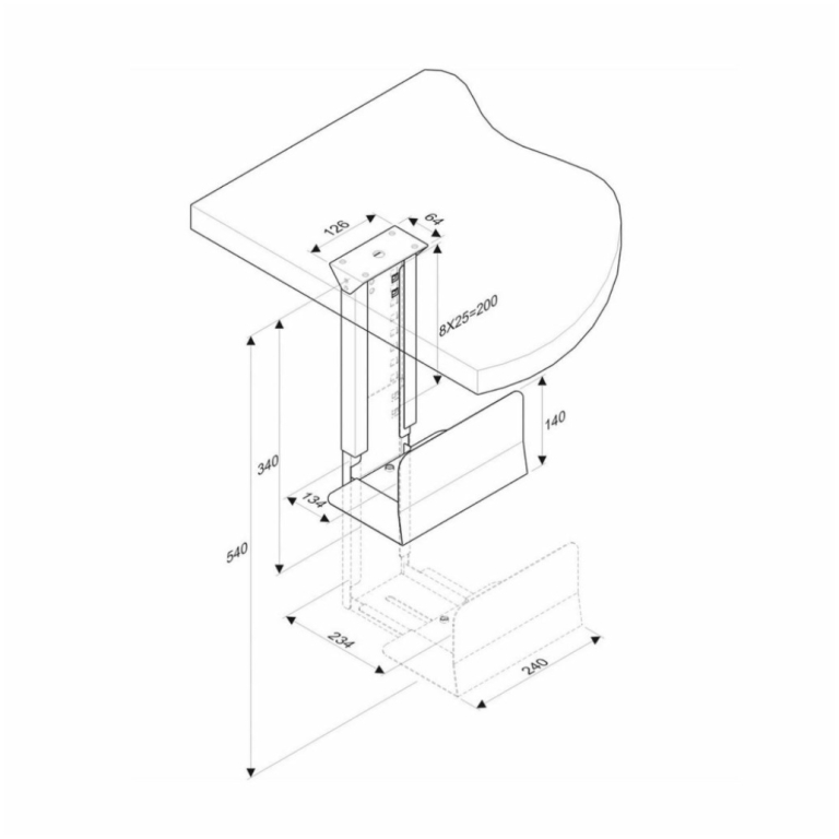 Nosilec za računalniško ohišje za pritrditev pod mizo