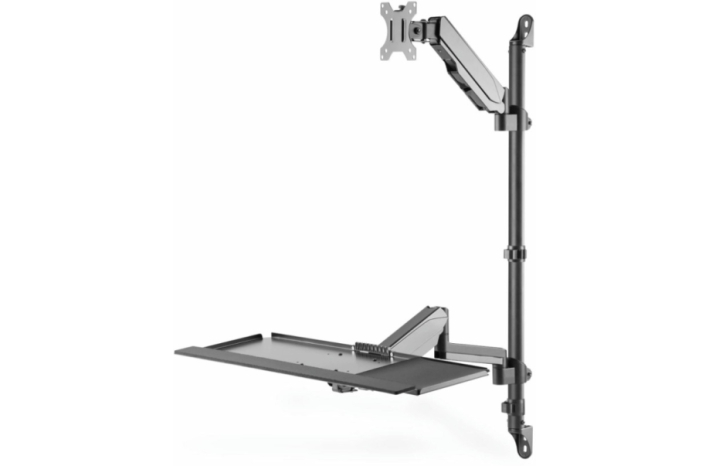Nosilec za LCD monitorja omogoča prilagodljivo nastavitev delovne višine in enostavno montažo na steno. S polico za tipkovnico in miško je idealen za udobno delovno okolje.