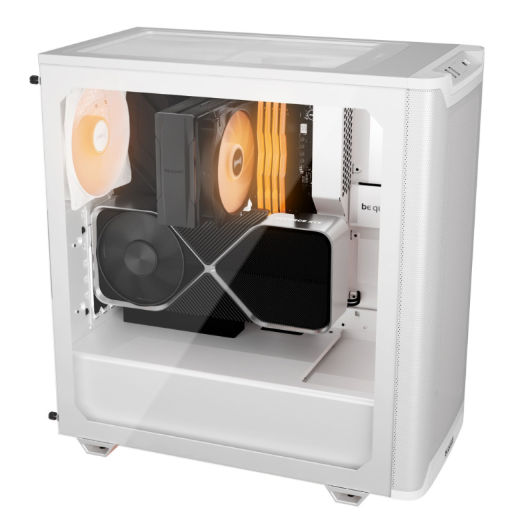 Pure Base 501 LX White kljub svojim kompaktnim dimenzijam ponuja dovolj prostora za vrhunske grafične kartice in velike hladilnike. Trojne ventilatorje ali radiator do 360 mm je mogoče preprosto namestiti spredaj, medtem ko zgornji del nudi prostor za do 2 ventilatorja ali radiator do 240 mm.