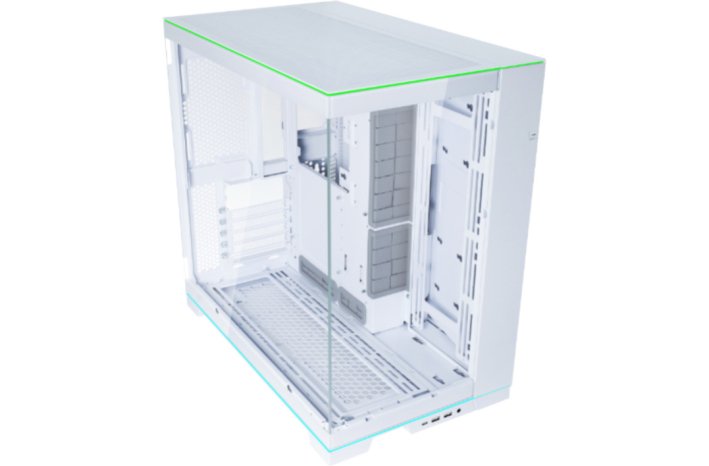 Ohišje O11D EVO RGB ima zgoraj in spodaj RGB 1,5 mm debel LED trak, ki omogoča osvetlitev v 14 različnih svetlobnih učinkih, enostavno prilagoditev svetlosti in sinhronizacijo z osvetlitvijo na matični plošči.