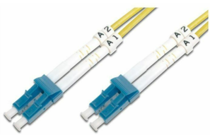 Leviton visoko kvaliteten priključni optični kabel SM OS2 5m rumen Duplex za povezovanje aktivnih in pasivnih naprav v optična omrežja.