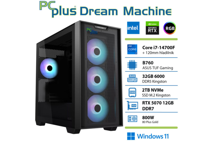 PCPLUS Dream machine Intel I7-14700F 32GB 2TB NVMe SSD RTX 5070 12GB Windows 11 Home gaming namizni računalnik