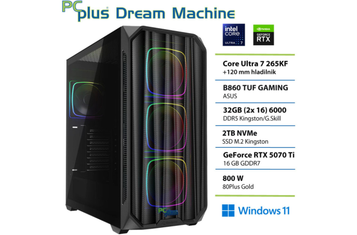 PCPLUS Dream Machine Ultra 7 265KF 32GB 2TB NVMe SSD RTX 5070 Ti 16GB Windows 11 Home gaming namizni računalnik