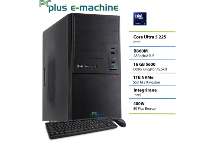 PCPLUS e-machine Core Ultra 5 225 16GB 1TB tipkovnica miška namizni računalnik