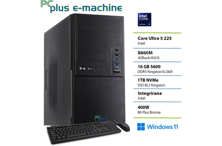 PCPLUS e-machine Core Ultra 5 225 16GB 1TB SSD Windows 11 Pro tipkovnica miška namizni računalnik