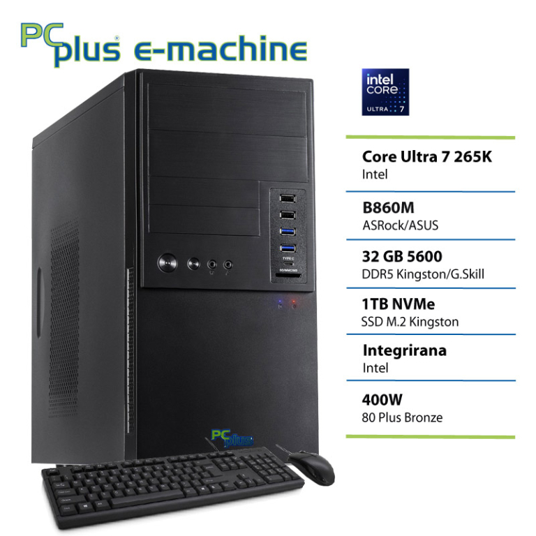 PCPLUS e-machine Core Ultra 7 265K 32GB 1TB tipkovnica miška namizni računalnik