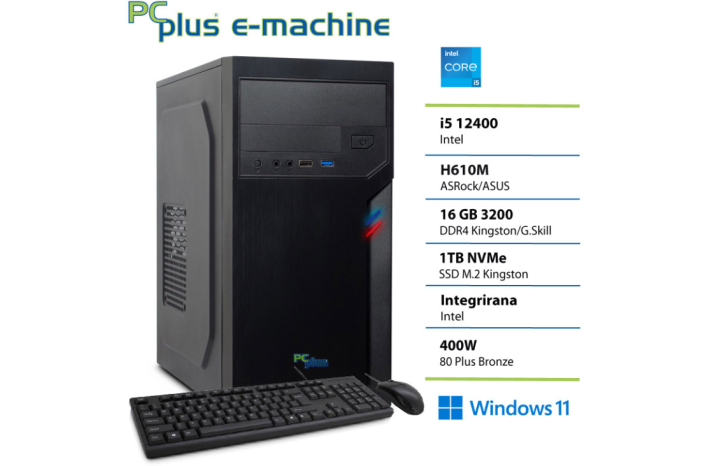 PCplus e-office i5-12400 16GB 1TB NVMe SSD Windows 11 Home tipkovnica miška namizni računalnik