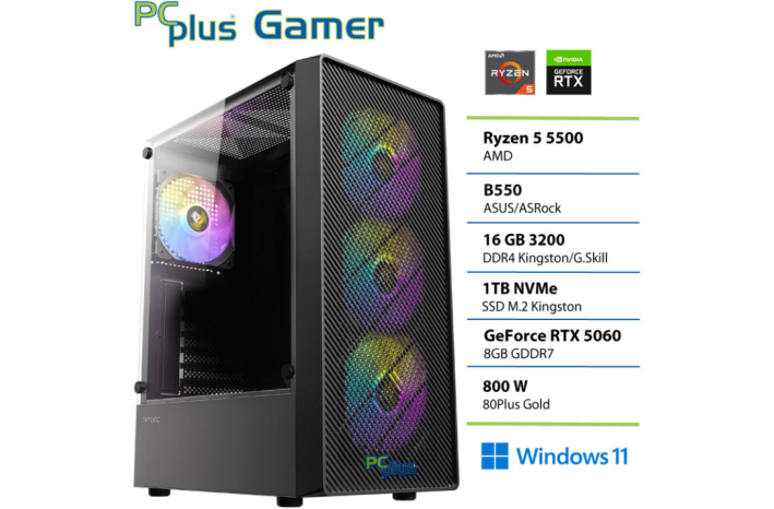 PCPLUS Gamer Ryzen 5 5500 16GB 1TB GeForce RTX 5060 8GB Windows 11 Home gaming namizni računalnik