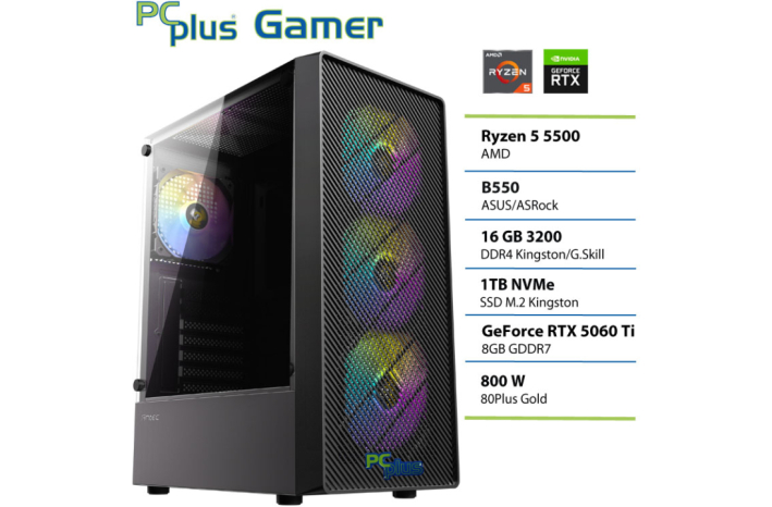 PCPLUS Gamer Ryzen 5 5500 16GB 1TB GeForce RTX 5060 Ti 8GB gaming namizni računalnik