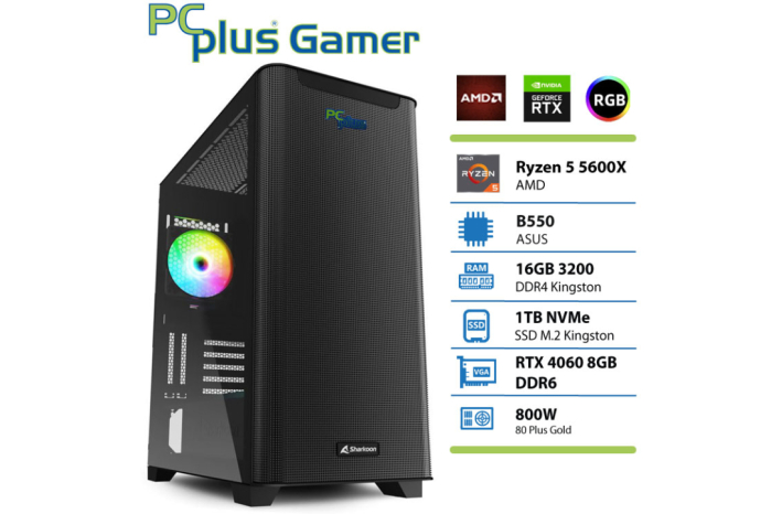 PCPLUS Gamer Ryzen 5 5600X 16GB 1TB NVMe SSD RTX 4060 8GB DDR6 gaming namizni računalnik