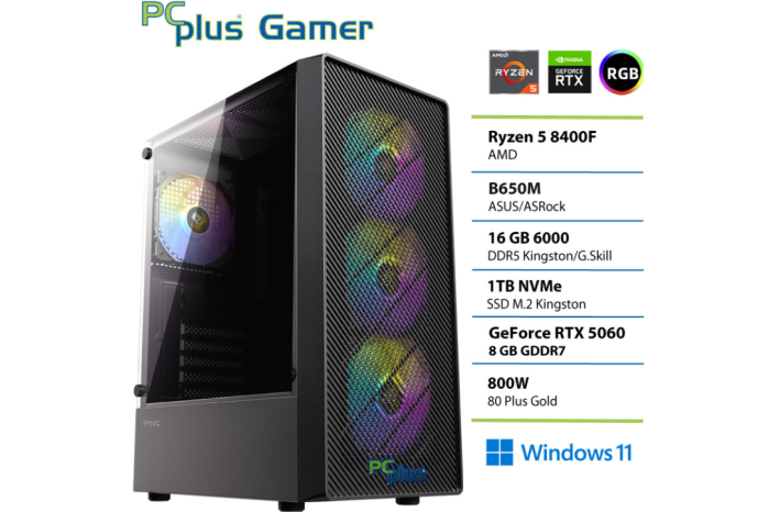 PCPLUS Gamer Ryzen 5 8400F 16GB 1TB GeForce RTX 5060 Ti 8GB Windows 11 Home gaming namizni računalnik