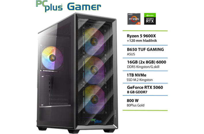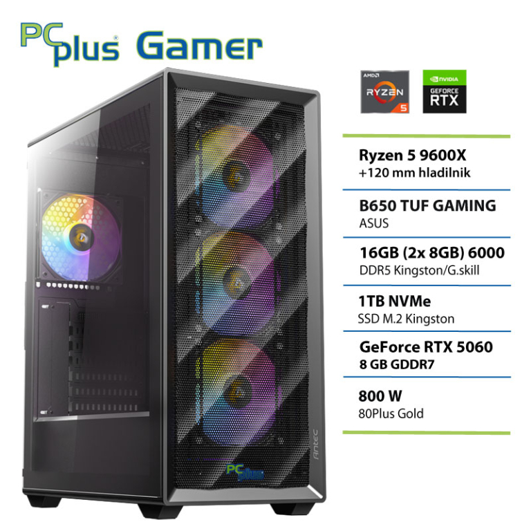 PCPLUS Gamer Ryzen 5 9600X 16GB 1TB NVMe SSD RTX 5060 8GB gaming namizni računalnik